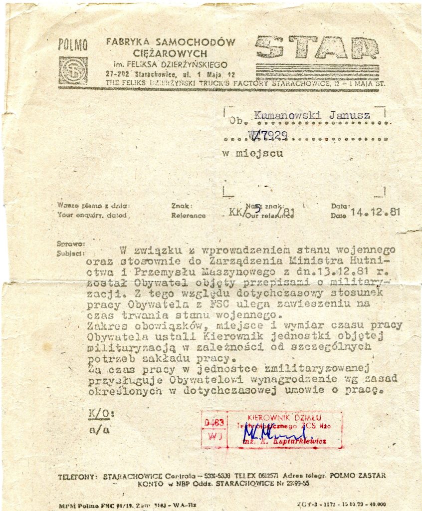 [7] AIPN Ki 07/276, Akta osoby internowanej w ramach sprawy obiektowej kryptonim “Jodła” dot. Siwiec Henryk, Wniosek o Internowanie z dn. 23.08.1982 r., s.4.